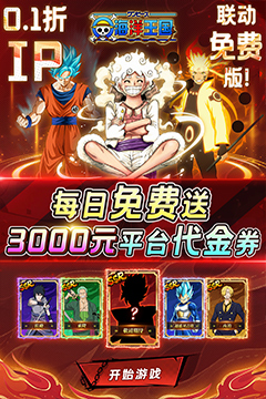 《海洋王国》0.1折IP联动免费版,每天送3000元平台代金券!梦幻联动经典突破!民工漫IP大集结,海贼与龙珠火影联动,更有充值永久0.1折!路飞携手悟空和鸣人,一起寻找伙伴共闯新世界。好激动哦,下个联动人物是谁呢?